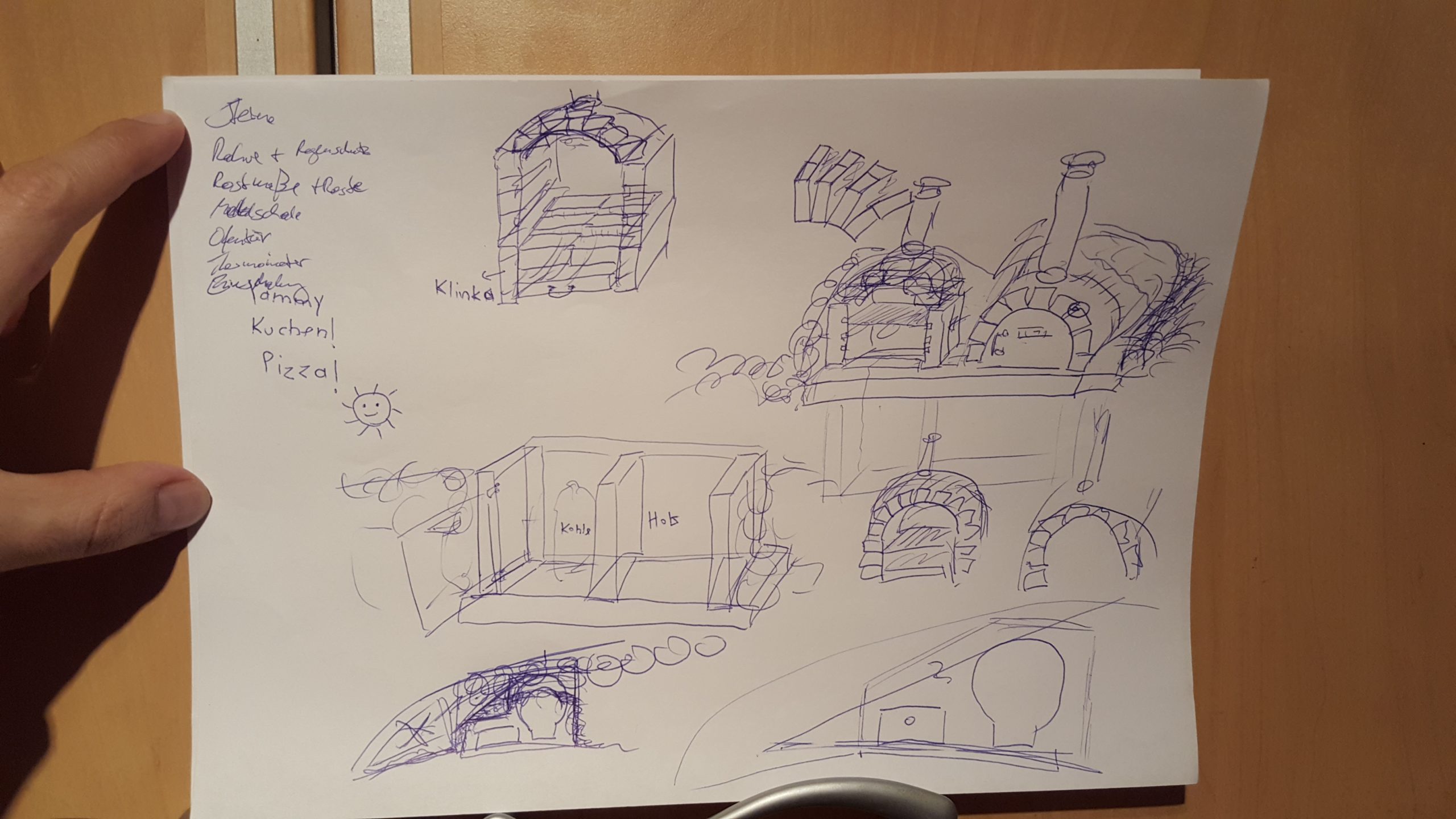 Über ca. 2 Monate hinweg haben wir uns einen Grill und einen Steinbackofen in den Garten gemauert. Über den Winter wurde viel darüber geredet, nach Bauanleitungen, Materialempfehlungen und sonstigen Tips & Tricks recherchiert. Hilfreich dazu waren viele Videos und Erlebnisberichte anderer Ofenbauer im Netz, die mit entsprechendem Bildmaterial und Fotos von Gebackenem Lust auf einen eigenen Ofen machten. Anfang Mai wurde dann also ein Plan erstellt. Wenn man ihn nachträglich mit dem finalen Bauwerk vergleicht, sind die beiden sich gar nicht so unähnlich :-). Die Bilder über die Bauabschnitte sind hier in der Gallerie mit entsprechender Beschriftung, was man da jeweils genau sieht. Den Grill ebenfalls aus Schamottesteinen zu mauern war die richtige Wahl. Man benötigt extrem wenig Kohle beim Grillen, da die Wände die Hitze sehr gut zurückwerfen.